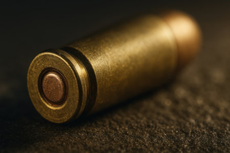Group of copper and gold bullets reflecting on a dark background, creating a dramatic and intense atmosphere