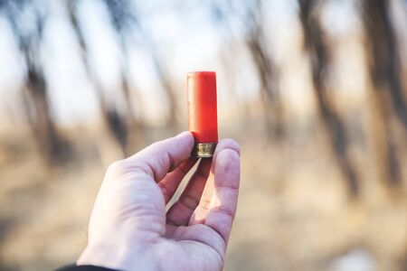 Close-up reloading of a hunting rifle. The hunting period, the season is open