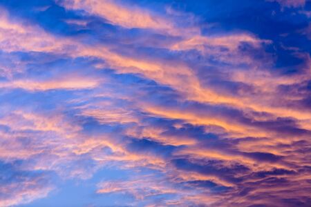 Cloudscape, Colored Clouds at Sunset near the Ocean, Background