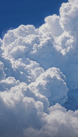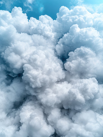 This image showcases a stunning formation of fluffy white clouds set against a clear blue sky. It celebrates the beauty of nature and invites viewers to appreciate the calmness and tranquility of the atmosphere.