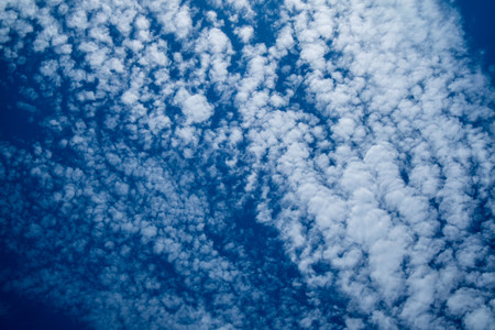 Deep blue sky background with withe clouds. Natural composition of nature.