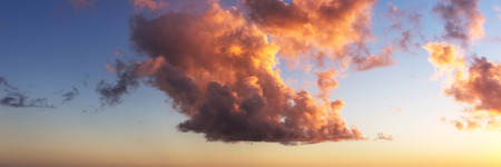 Panorama of Dramatic vibrant color with beautiful cloud of sunrise and sunset. Panoramic image.