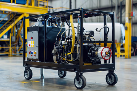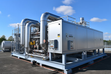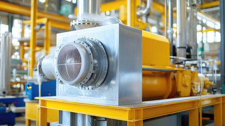 A sleek representation of modern industrial equipment featuring pipes, a large tank, and control panels, perfect for showcasing technology in advertisements.