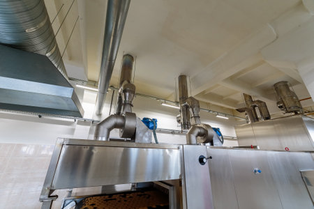 industrial air conditioning system on a rooftop, featuring a large fan and a network of pipes.This will be a great opportunity to showcase the intricate details and functionality of the system