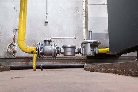 Gas boiler room equipment. Gas pipeline with safety gas valve.