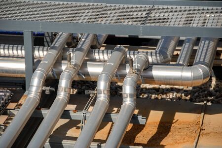 Equipment with tubes, pressure meters and measuring devices for pumping and processing of natural gas, natural gas pipeline.