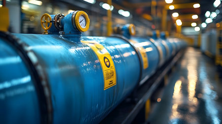This image showcases industrial pressure gauges in a modern facility, highlighting precision measurement and control in a vibrant and efficient manufacturing environment.