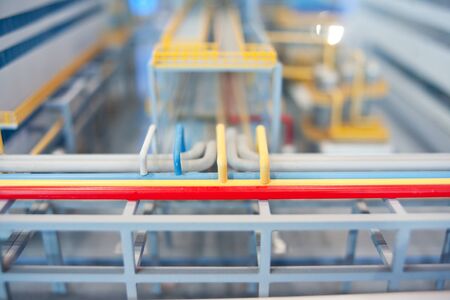 Industrial interior of an old factory with machinery, pipes and equipment