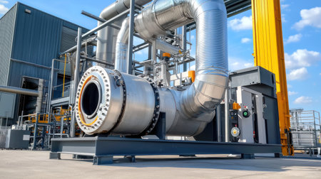 A sleek representation of modern industrial equipment featuring pipes, a large tank, and control panels, perfect for showcasing technology in advertisements.