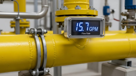 This vibrant image showcases a water pressure gauge system mounted on a bright yellow background, perfect for illustrating industrial plumbing applications and technology.