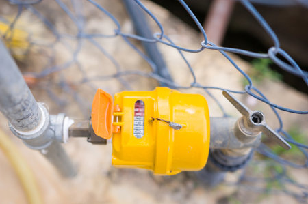 a yellow gas pipe and pressure gauge