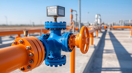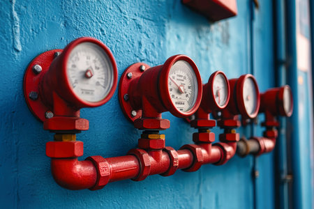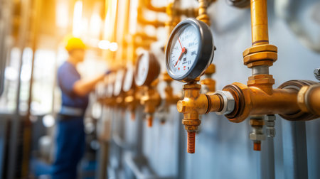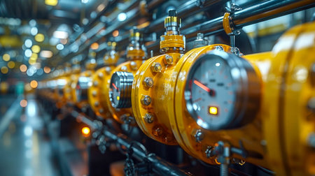 Explore the intricate details of industrial valves and pressure gauges in a vibrant manufacturing environment, showcasing functionality and precision in engineering.