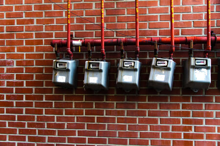 Vintage red wall brick with power meters.