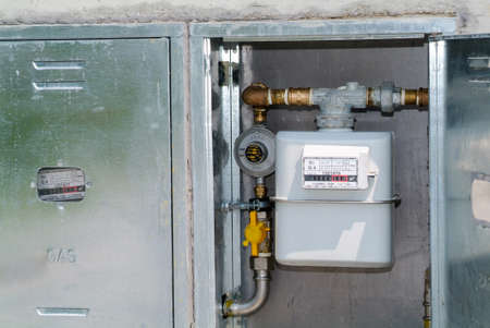 A gas meter in the private house, counter for distribution domestic gas.