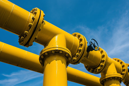 A striking image featuring an industrial pipeline system showcasing bright yellow pipes and black valves, representing modern utility and infrastructure solutions.