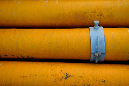 Yellow pipes for gas in nature. The concept of construction of gas pipelines.