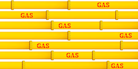 Close-up of a yellow industrial gas pipeline featuring a red valve highlighting essential infrastructure
