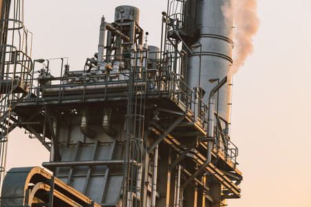 Industrial site exterior, abstract factory detail -