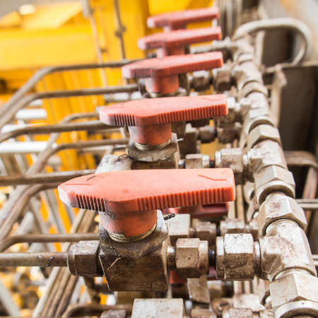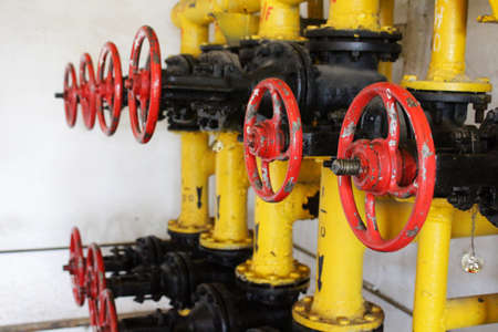 Valves manual in the production process. Production process used manual valve to control the system, Operator open and close or function the valve for controlled pressure or gas and oil flow rate.