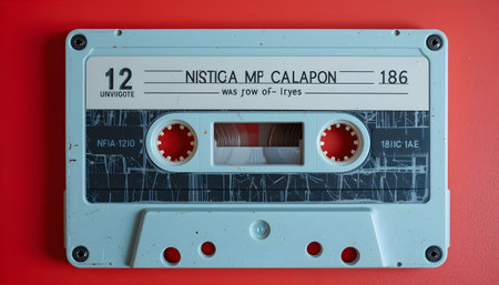 Krasnodar, Russia - January 31, 2022: Vintage audio cassette. Retro music medium, cassette a Retro
