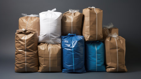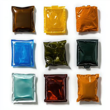 Collection of Colorful Plastic Packages in Various Shades Arranged on a Flat Surface for Creative Concepts and Design Inspiration