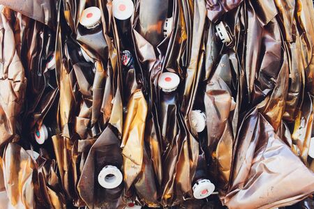 Plastic pressed bales at the modern waste hazardous processing plant. Separate garbage collection. Recycling and storage of waste for further disposal. Business for sorting and processing of waste.