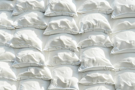 Soft white pillows arranged neatly on a wall, creating a cozy and inviting atmosphere for relaxation and comfort in a tranquil setting.