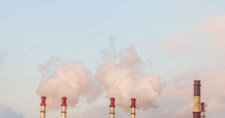Industrial landscape - Smoke from the pipes of heat station with carry out harmful emissions.Petrochemical factory chimney.Its held to increasing Global warming. pollution city chemical industries.