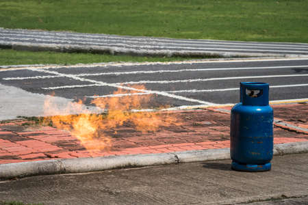 fire safety tank in the factory Practice a fire drill outdoor Many working people training