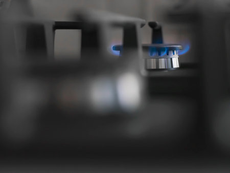 The mesmerizing blue flames from a gas stove enhance the cooking ambiance and captivate