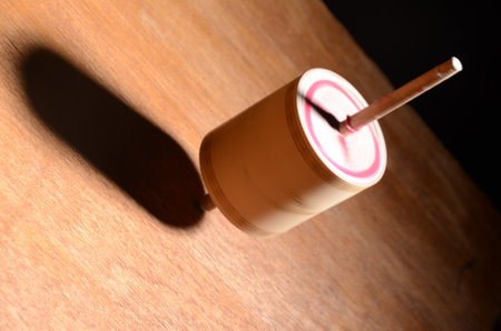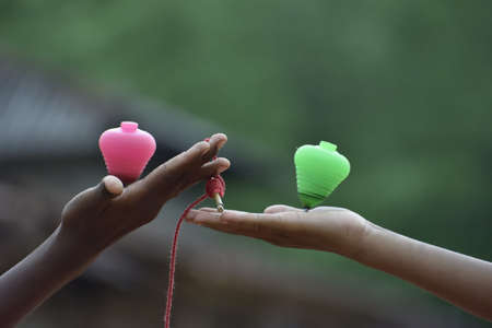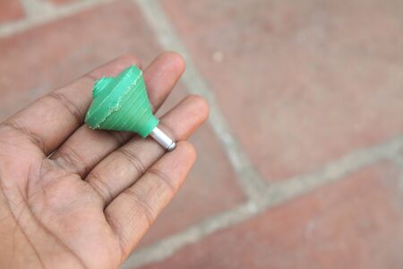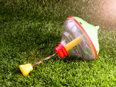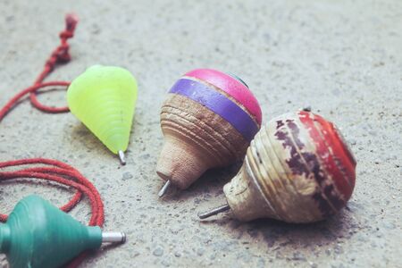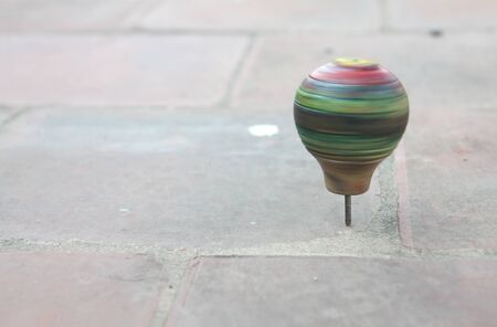 Leisure activities or handmade toys concept. pinning top or whirligig top