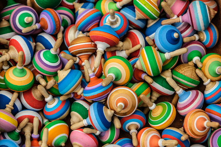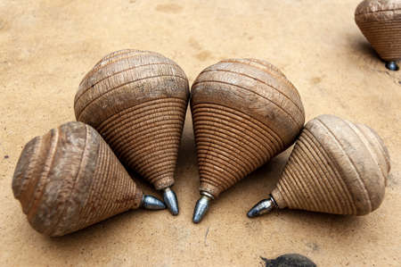 Wooden peg tops or whirligigs as background