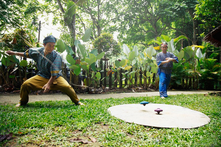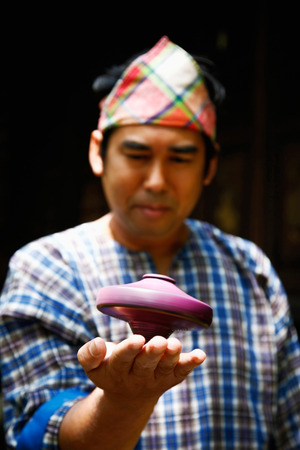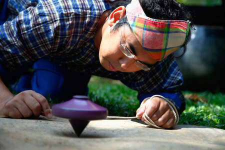 Spinner made of wood (Gasing) with rope is traditional games of the Malay community