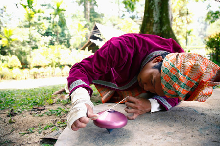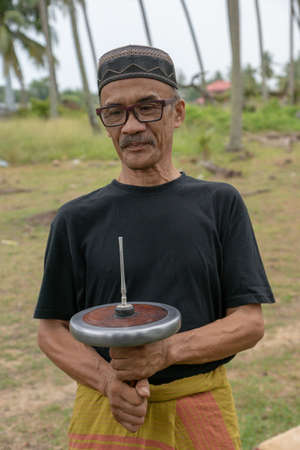 Kelantan/Malaysia - Jul 15 2017: A man hold gasing.