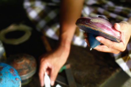 karachi pakistan_a young boys hold in his hand spintop spintop is traditional game in pakistan for young kindstop designed to be spun rapidly on the ground Traditionally tops were constructed of wood, sometimes with an iron tip, and would be set in motion