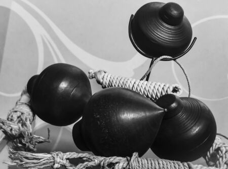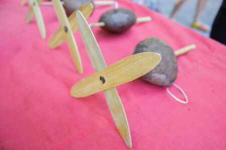 Thai traditional local toy made from wood rock and rope