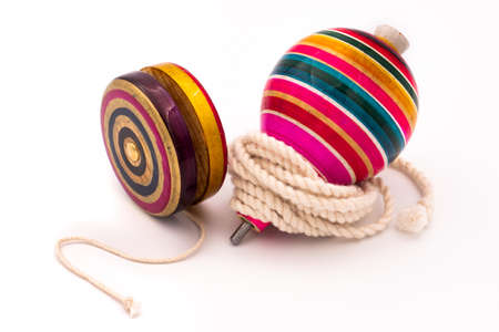The colorful yo-yo and trompo on a white background