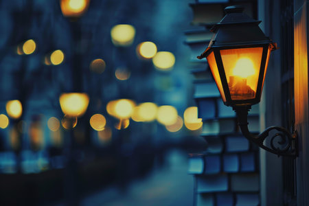 As twilight settles over the bustling city, a vintage lantern casts a warm, inviting glow.