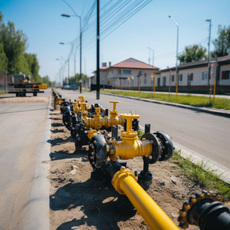 A striking image featuring an industrial pipeline system showcasing bright yellow pipes and black valves, representing modern utility and infrastructure solutions.