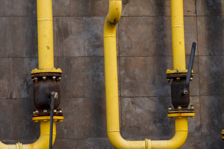 Yellow gas pipe on a wall