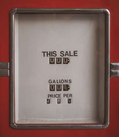An antique gas pump stands in solitude against a rustic white background, showcasing a piece of petroliana history