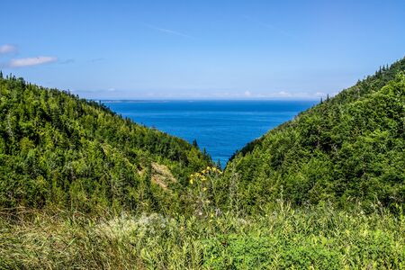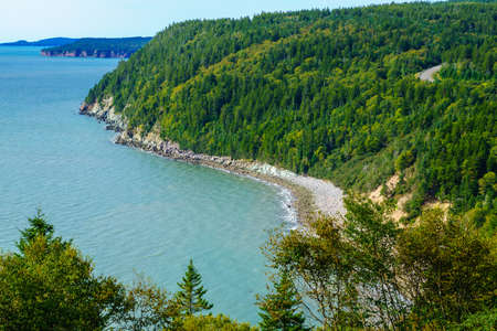 View of coastal landscape in Fundy Trail Parkway park, New Brunswick, Canada