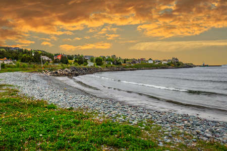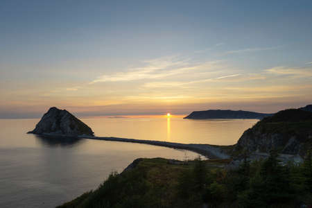 Sunset view of shore and ocean in the south sector of Forillon National Park, Gaspe Peninsula, Quebec, Canada