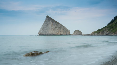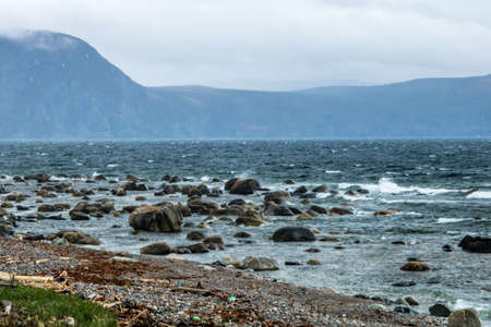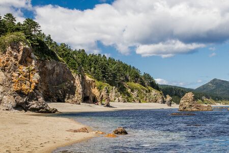 A beautiful coast of the Sea of Okhotsk. Cape Velikan, Sakhalin Island, Russia.