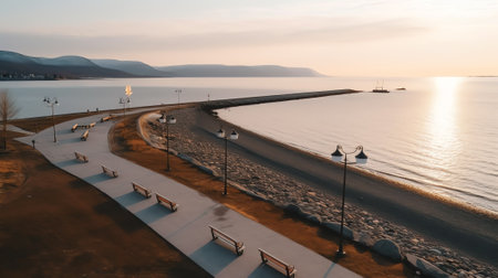 Generative AI Aerial view of a crane working on the breakwater along the beach in Follonica, Grosseto, Tuscany, Italy.
