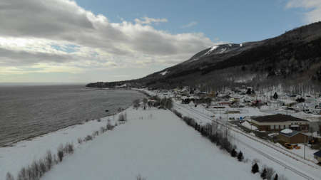 View on the Saguenay Fjord and the small (very small) port of L'Anse De Roche, cute little village of Quebec, Canada