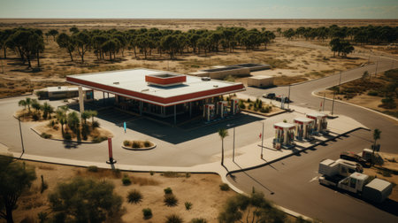 Generative AI Aerial Perspective of Interstate Rest Stop