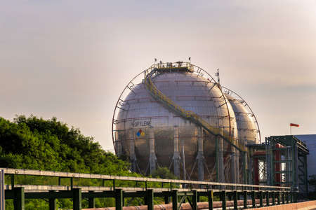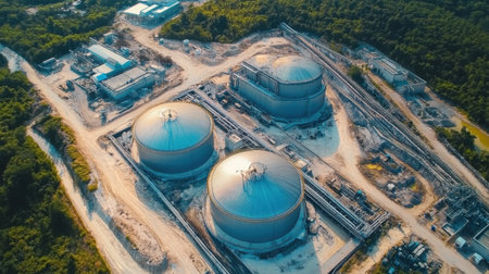 Storage tanks for liquefied natural gas top down aerial view