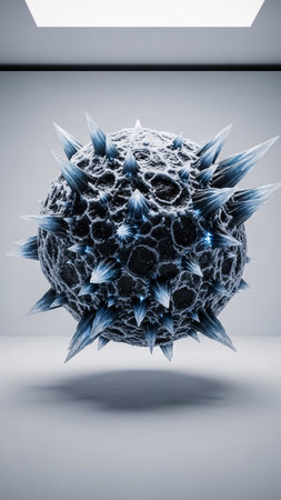 A detailed shot of a unique marine organism, featuring numerous sharp spines and a porous, irregular surface, highlighting its intricate biological structure.