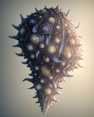 A mesmerizing view of a unique underwater creature resting on the ocean floor. The image captures intricate details and textures in a serene and mysterious setting.